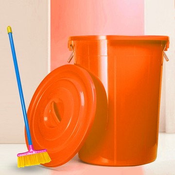 點我下載台灣製萬用桶儲水桶垃圾桶附蓋(顏色隨機) 86l (單入桶+掃把1支)