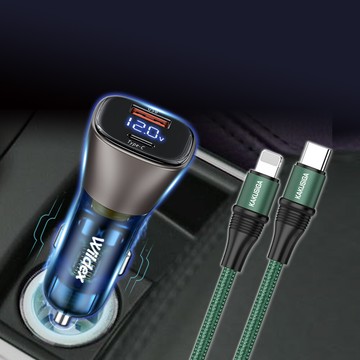 點我下載wildex微透63w急速充電pd+qc雙孔電瓶電壓車充頭+100w iphonepd傳輸充電線