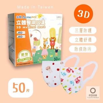 Acme 永猷 幼幼立體醫療口罩 XS 怪手 白色 50片 1盒