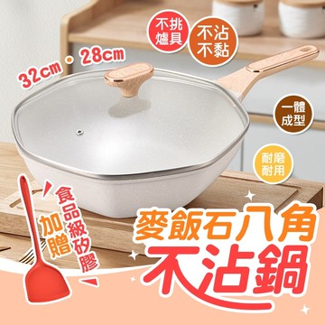 點我下載加深抗菌麥飯石八角不沾鍋32cm(附蓋) 不挑爐具 可ih 加贈矽膠鍋鏟