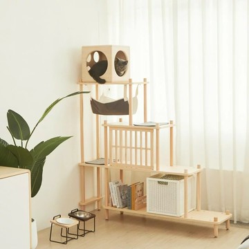 千鳥格劍麻2層睡窩貓爬架 貓床 貓窩 玩耍休息 多功能