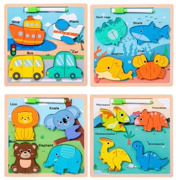 點我下載四合一 拼圖畫板 木質立體拼圖恐龍立體兒童拼圖 加厚3d立體卡扣拼圖 早教認知拼圖yf18726