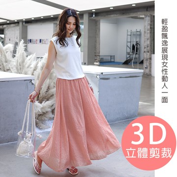 點我下載現貨 棉麻感寬褲 雙層a字大擺設計飄逸長褲 #0413195