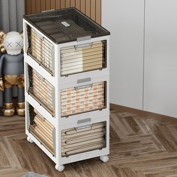 【DaoDi】萬向輪四層三開門折疊收納箱(摺疊收納箱 衣物收納 置物盒收納櫃 收納盒)