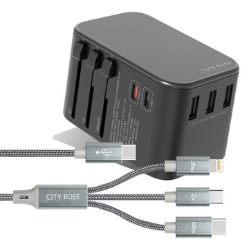 點我下載city 萬用轉接頭急速充電器33w pd快充+typec 1對3 pd快速閃充線三合一(30cm灰
