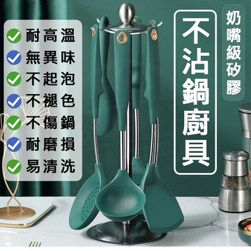 點我下載高級矽膠廚具5件套 不沾鍋廚具矽膠 湯勺 撈麵勺 鍋鏟 漏勺 飯勺 奈米廚具