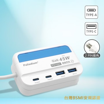 點我下載極速45w氮化鎵gan pd+qc智慧閃充 4孔充電器 usb插座/擴充座/轉接插頭 1.5米