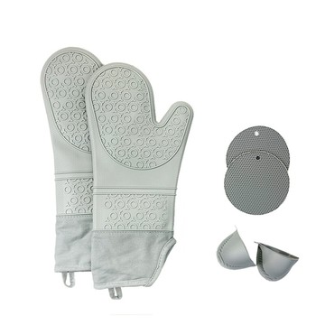 點我下載push!餐廳廚房用品矽膠隔熱手套6件套烤箱加厚手套微波爐耐高溫廚房隔熱手套蜂窩墊手夾d322