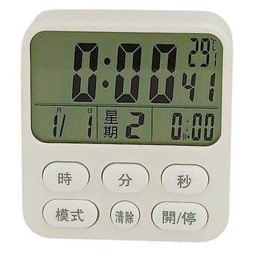 KOMEKI 白色經典磁吸計時器 LCD 3鍵 帶掛繩孔 帶支架 7041 1個