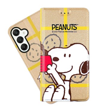 點我下載snoopy/史努比三星 samsung galaxy a25 5g 彩繪可站立皮套(吃餅乾)