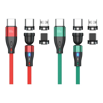 點我下載fc3026 pd60w 三合一 磁吸旋轉彎頭快充線 1m(蘋果/安卓/type-c/3a電流)
