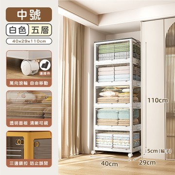 Tiger Pavilion 特大號五層 虎閣收納櫃/家用折疊收納櫃/多層置物櫃/帶輪玩具儲物櫃/廚房櫃子/收納箱 60 x 38 x 168.5cm 1個 白色