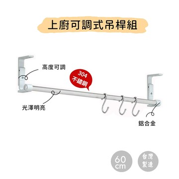 點我下載廚房上廚吊桿組60cm(含s鉤)/304不鏽鋼/高度可調/免鑽孔/玻璃牆面可用/吊櫃掛桿/mit-網