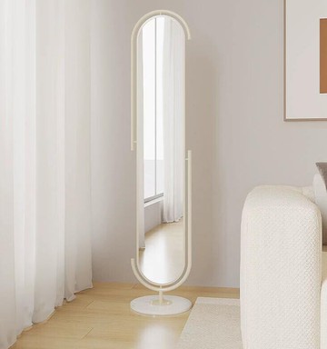 點我下載鏡子全身鏡落地試衣鏡360度旋轉奶油風穿衣鏡家用鏡子全身鏡落地鏡少女臥室網紅拱形試衣鏡 175*45