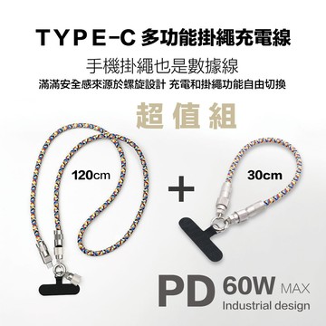 點我下載type-c多功能斜背手機掛繩充電線 數據線 買一送三