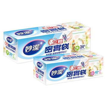 妙潔 立體密實袋 大(24入)x2+小(42入)x2 /4入組