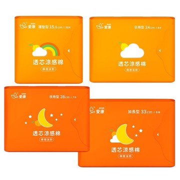 愛康透芯涼感棉-檸橙派對-多款任選(加長33cm/護墊15.5cm)(包裝隨機出貨)
