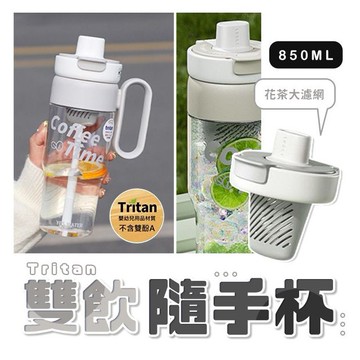 吸管隨手杯 800ML PC+PP+矽膠圈 防漏設計 白灰色 1個
