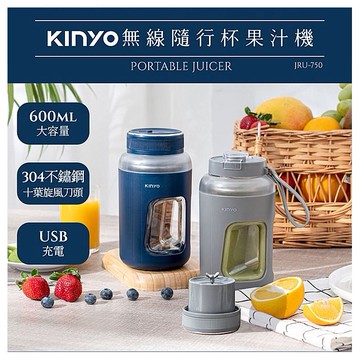 Kinyo 無線隨行杯果汁機 附USB充電線 + 替換式杯蓋 10.2 x 10.2 x 19.5cm 500g JRU-750 藍色