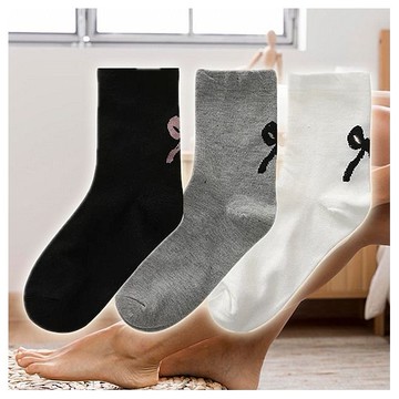 台灣製素色透氣精梳棉中筒襪(三入一組)