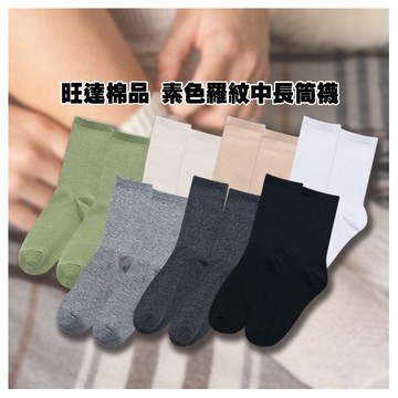 ONEDER 旺達棉品~素色羅紋中長筒襪(1雙入) 款式可選