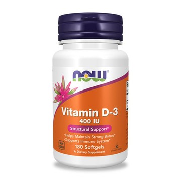 【產品資訊】品名:[NOW] 維生素D3膠囊1瓶(180顆)成份:初榨橄欖油、明膠 (牛皮)、水、甘油、維生素D3 (紅花籽油、維生素D3)內容量:180顆/瓶營養成分:維生素D 10微克 (400 IU)食用方式:每次1顆,一天1次,一天請勿超過1顆,餐後以開水食用,多食無益。注意事項:置於陰涼乾燥處保存並遠離孩童孕婦、哺乳婦、手術前後者食用前請先詢問醫師顆粒色澤有深淺不同之變化屬正常現象,請安心食用產地:美國原裝進口進口商名稱:特德寶有限公司進口商電話號碼:03-3116516進口商地址:桃園市蘆竹區內厝里安中街1號保存期限:3年製造 / 有效日期:如瓶底所示(月/西元年),日為當月最後一日投保責任險:本產品已投保國泰產物產品責任險新台幣肆仟萬元保障。投保金額不等同理賠金額。注意事項:孕婦、哺乳婦、手術前後者食用前請先詢問醫師。