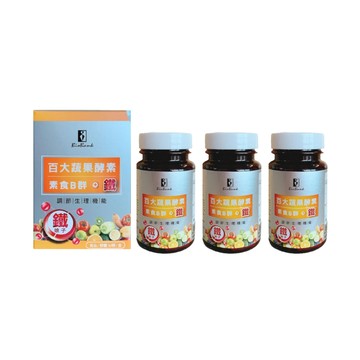 [大金宏醫BioBank] 百大蔬果酵素素食B群+鐵 (30顆/盒) 三入組-[BioBank 大金宏醫] 百大蔬果酵素素食B群+鐵 (30顆/盒) 三入組