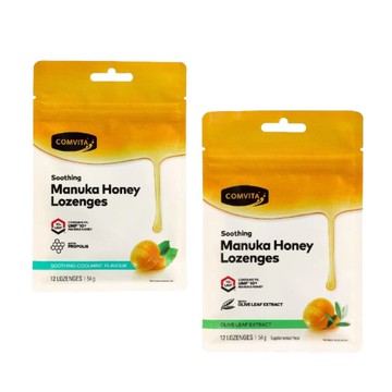 [壽滿趣] Comvita 康維他紐西蘭麥蘆卡蜂蜜潤喉糖 - 薄荷蜂膠/橄欖葉 (54g/包)-橄欖葉*1+薄荷蜂膠*1