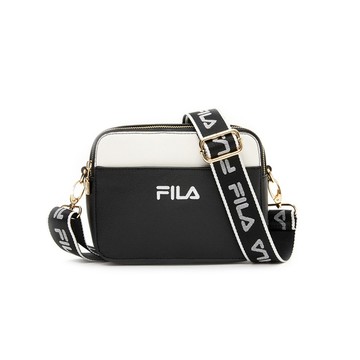FILA 織帶時尚皮革小方包-黑 BMW-1407-BK
