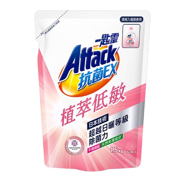 Attack 一匙靈 台灣公司貨 抗菌EX洗衣精 抗菌EX植萃低敏 補充包 1.5kg 3包