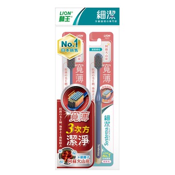 獅王細潔寬薄牙刷2入-炭能抗菌