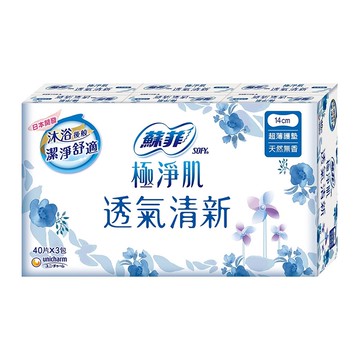 蘇菲極淨肌透氣清新超薄護墊14cm(天然無香)40PC