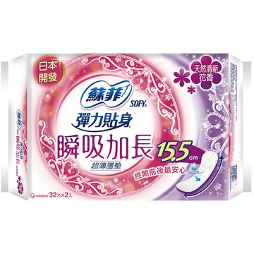 蘇菲 瞬吸加長超薄護墊天然清新花香(15.5CM)(32片 x 2包/組)