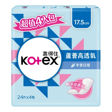 Kotex靠得住 蘆薈高透氧護墊沐浴香氛17.5cm 24片4入(包裝隨機出貨)