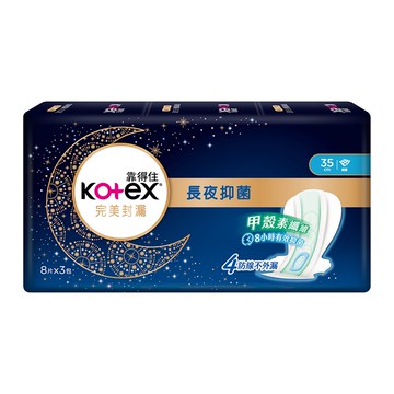 Kotex靠得住 草本抑菌衛生棉夜用加長35cm 8片*3包/組