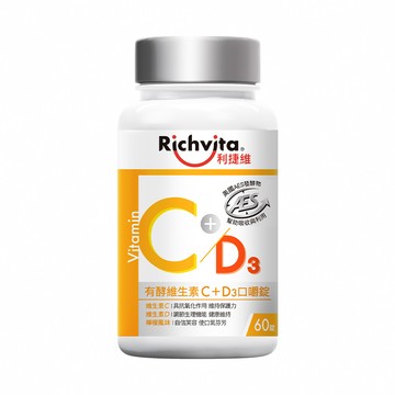 【Richvita 利捷維】有酵維生素C+D3 口嚼錠 60錠 (添加維生素D 400IU)