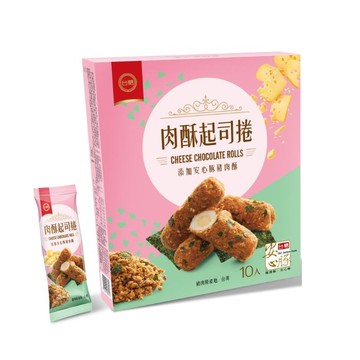 成分:糙米捲[糙米、棕櫚油、麥芽糊精、白米、玉米、砂糖、蛋黃粉、醬油粉(大豆、小麥、鹽、糖)]、高級硬質起士代可可脂巧克力[完全氫化棕櫚核仁油、乳糖、蔗糖、乳粉、餅乾〔麵粉、棕櫚油、食用烤酥油、 糖粉(蔗糖、玉米澱粉)、麥芽抽出精、膨脹劑(碳酸氫銨、碳酸氫鈉、碳酸鎂)、食鹽(碘酸鉀)、乾酵母粉、葡萄糖、乳粉、玉米澱粉、調味劑(L-麩酸鈉)、蛋白分解酵素P-18(小麥粉、蛋白分解酵素)、抗氧化劑(偏亞硫酸氫鈉)〕、麥芽糊精、乾酪粉、完全氫化棕櫚油、食鹽(碘酸鉀)、可可脂、大豆卵磷脂、香料 (起士香料)、著色劑(食用黃色五號鋁麗基、食用黃色四號鋁麗基)]、台糖精選豬肉鬆[豬肉、砂糖、豌豆粉、白芝麻、沙拉油、醬油、食鹽、海苔、混合濃縮生育醇(抗氧化劑)]、亞麻仁籽粉