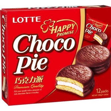 LOTTE 樂天 黑巧克力派 濃郁巧克力包裹柔軟蛋糕,夾心棉花糖,韓國樂天經典銷售超過20年的美味蛋糕派 336g 1盒