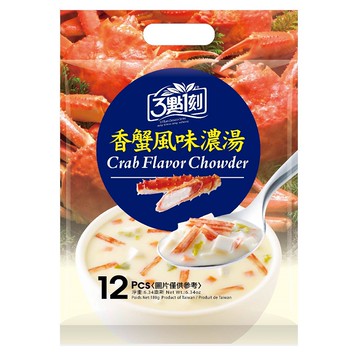 成分:乙醯化磷酸二澱粉、奶精(葡萄糖漿、完全氫化椰子油、牛奶蛋白、磷酸氫二鉀、多磷酸鈉、脂肪酸甘油酯、單及雙脂肪酸甘油二乙醯酒石酸酯、辛烯基丁二酸鈉澱粉、二氧化矽、β-胡蘿蔔素)、麥芽糊精、乳糖、蟹味棒[魚漿、糖、鹽、小麥澱粉、紅麴色素、維他命E(抗氧化劑)、蛋白、蟹抽出物]、精鹽、豆腐角(黃豆、葡萄糖酸-δ-內酯、氯化鎂、脂肪酸甘油酯、碳酸鈣、卵磷脂)、海鮮風味高湯粉[糖、鹽、麥芽糊精、海鮮抽出物、調味劑(5'-次黃嘌呤核苷磷酸二鈉、5'-鳥嘌呤核苷磷酸二鈉、琥珀酸二鈉、DL-胺基丙酸)、酵母抽出物、香辛料(洋蔥粉、胡椒粉)、海鮮香料、品質改良劑(二氧化矽)]、細糖、膠質D(麥芽糊精、羧甲基纖維素鈉、關華豆膠)、紅蘿蔔、蔬菜風味高湯粉[蔬菜抽出物、酵母抽出物、鹽、糖、麥芽糊精、水解植物蛋白、香辛料(薑粉)、肉味香料、調味劑(5'-次黃嘌呤核苷磷酸二鈉、5'-鳥嘌呤核苷磷酸二鈉、琥珀酸二鈉)、品質改良劑(二氧化矽)]、洋蔥粉(脫水洋蔥粉、玉米澱粉)、海苔片、β-胡蘿蔔素[阿拉伯膠、葵花油、麥芽糊精、蔗糖、水、β-胡蘿蔔素、L-抗壞血酸棕櫚酸酯(抗氧化劑)、生育醇(維生素E)(抗氧化劑)]、二氧化矽。