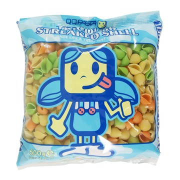 成分:杜蘭沙粒粉、水、食用黃色4號、食用黃色5號、食用藍色1號