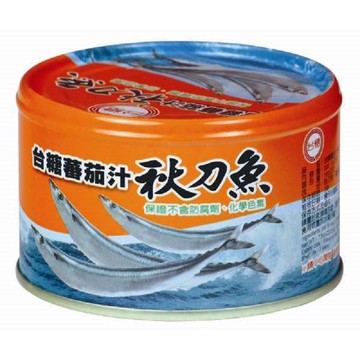 成分:秋刀魚、番茄糊、蔗糖、鹽、乙醯化己二酸二澱粉(粘稠劑)、甘草粉、大豆油。