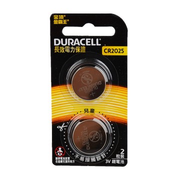 【金頂DURACELL金霸王】CR2025 3V 吊卡2入裝 鈕扣 鋰電池(不含水銀)