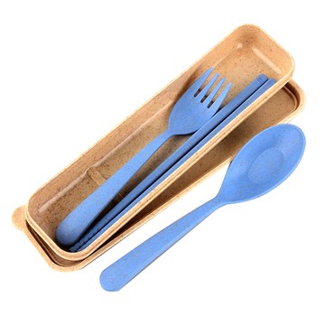 天然小麥桔稈叉匙筷餐具組-顏色隨機出貨