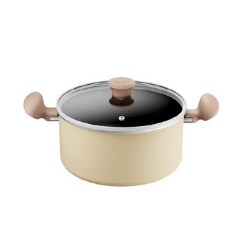 Tefal 特福 Daisy系列 IH爐/電磁爐適用 不沾鍋雙耳湯鍋 附蓋 20cm 米色 1個