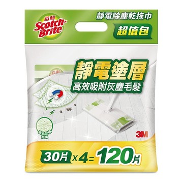 3M百利靜電除塵乾拖巾超值包-30張x4