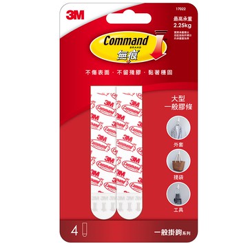 3M 思高牌 無痕 17022 大型雙面膠條/無痕掛勾膠條 4入 單片承重2.25kg