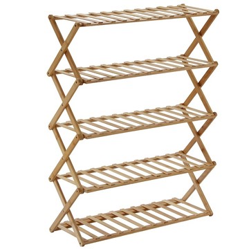沐慕家居 免安裝折疊竹製多層鞋架 五層 木色 1個