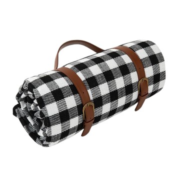 S-SportPlus+ 野餐墊 皮革 藍白格子 小(150cm) 戶外便攜 藍色 + 白色 1個