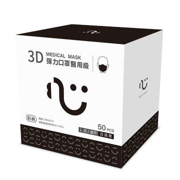 【匠心】可回收-3D彈力醫用口罩 L尺寸/黑色 (適合一般成人) 50入/盒