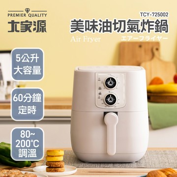 大家源 美味油切氣炸鍋 5公升大容量 60分鐘定時 80~200°C調溫 TCY-725002